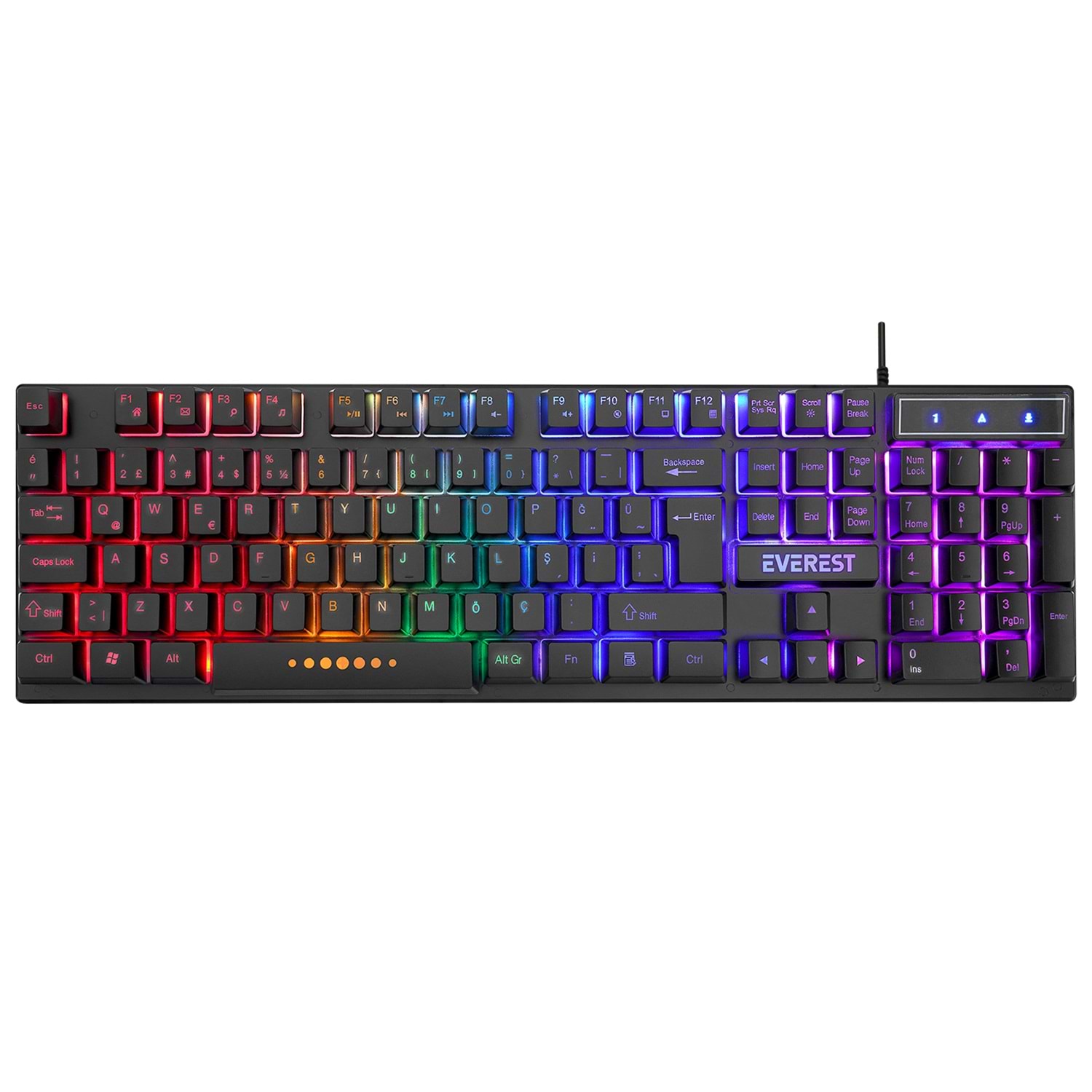 EVEREST KB-24 GÖKKUŞAĞI IŞIKLI USB KABLOLU OYUNCU KLAVYE 155CM KABLO